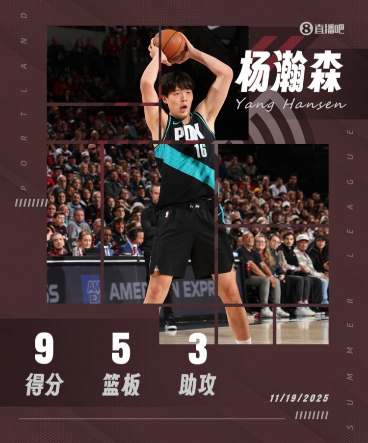 开拓者(6-8):杨瀚森9分5板3助、夏普29分2板3助、阿夫迪亚19分5板5助、乐福17分7板3助、克林根9分12板2助5帽、西索科8分3板5助2断、卡马拉6分2板3助、威廉姆斯4分2板、穆雷3分4板、吕佩尔3分1板、里斯3分